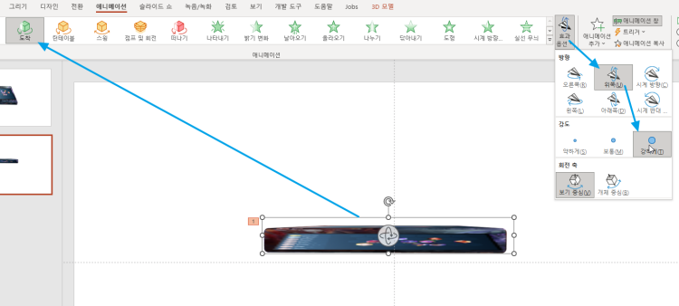 파워포인트 슬라이드에 stl파일을 드래그해서 불러온 뒤에 3D애니메이션 효과를 적용합니다.