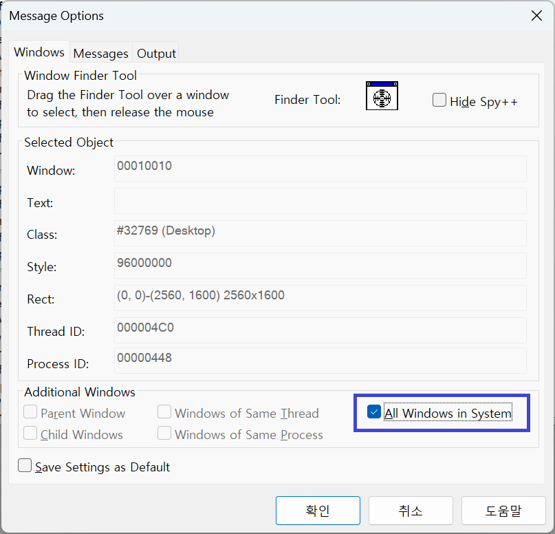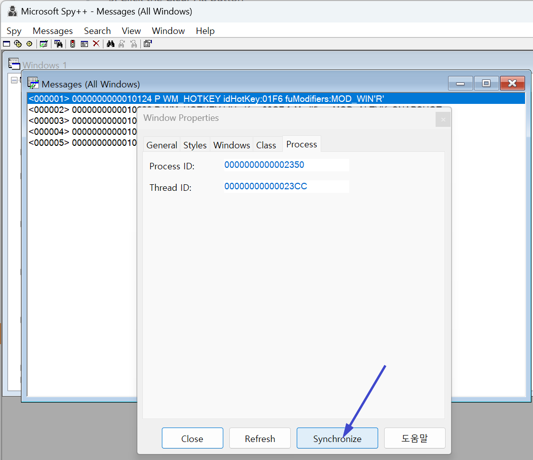 Spy++ 을 이용해서