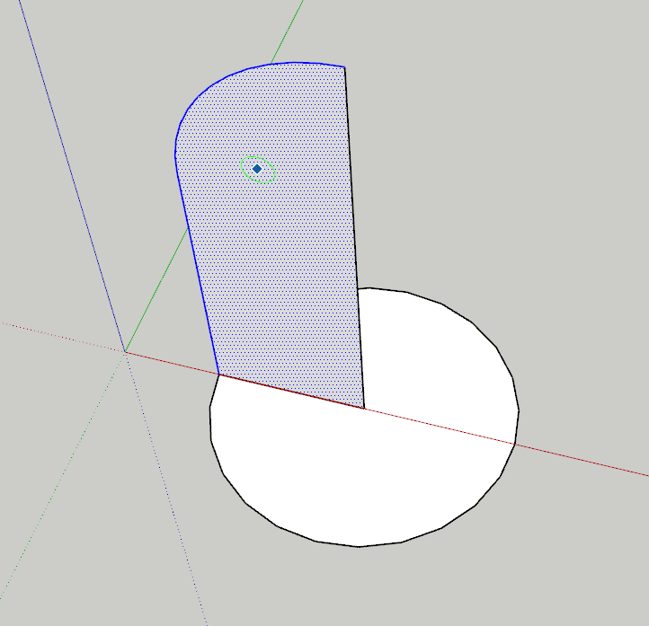 먼저 직사각형 위에 부채꼴을 추가해서 캡슐 절반의 단면을 완성합니다.