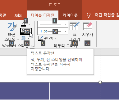 테이블(표), 스마트아트, 차트 등은 약간씩 다른 단축키를 적용해야 합니다.