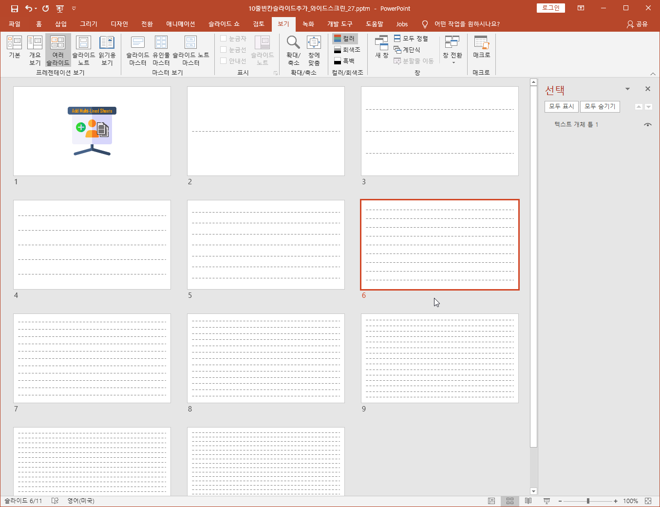 '슬라이드마스터에 줄 그어진 레이아웃 추가