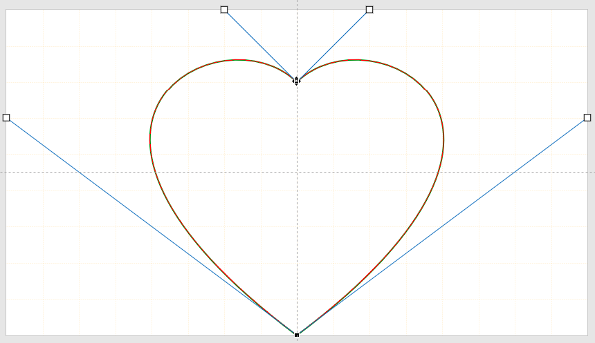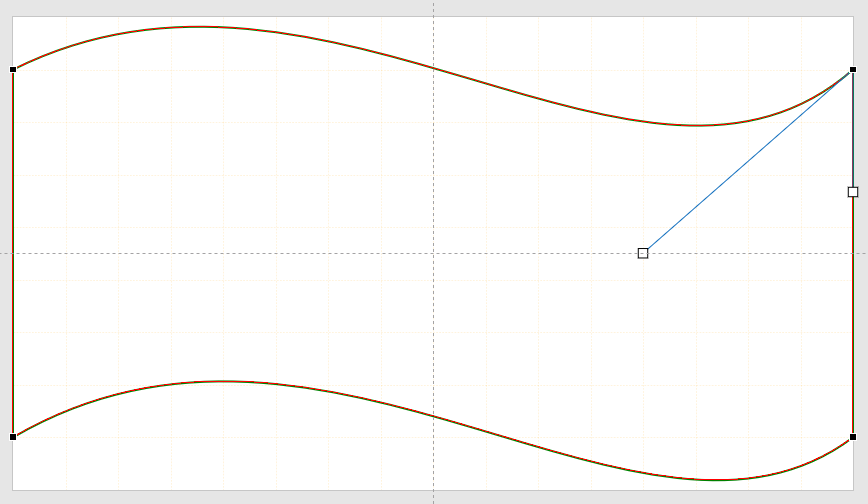 이제 화면 중앙을 끝점으로 하는 새 세그먼트가 추가되는데 시작 조절점이 화면 왼쪽 끝과 대칭으로 오른쪽 상단 끝으로 지정되었습니다.