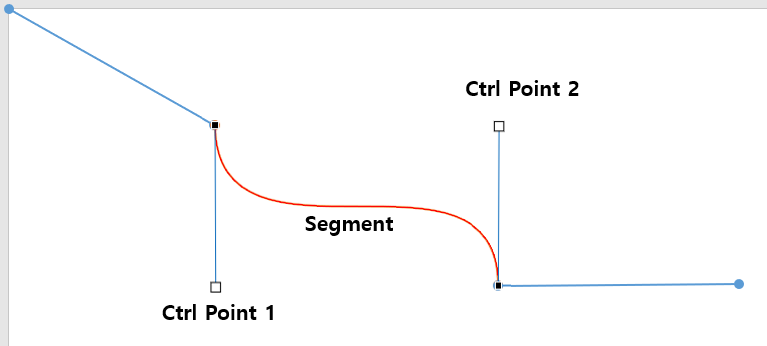 * Curve를 그릴 경우 처음 설명에 나온 것처럼 조절점1, 조절점2, 끝 좌표 순으로 3가지 노드를 가집니다.