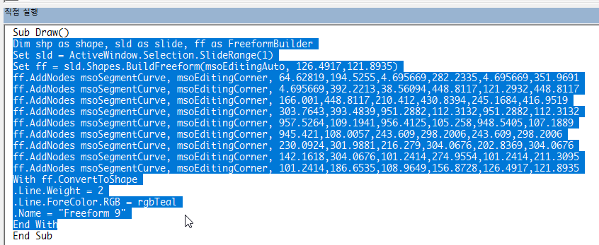 If shp.Type <> msoFreeform Then MsgBox "Freeform 도형을 선택하세요.": Exit Sub
