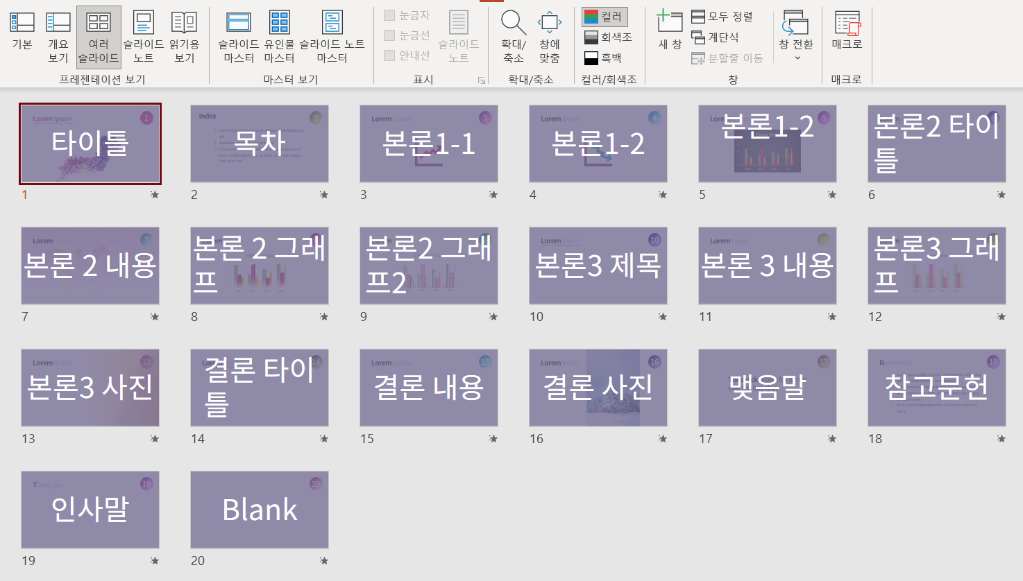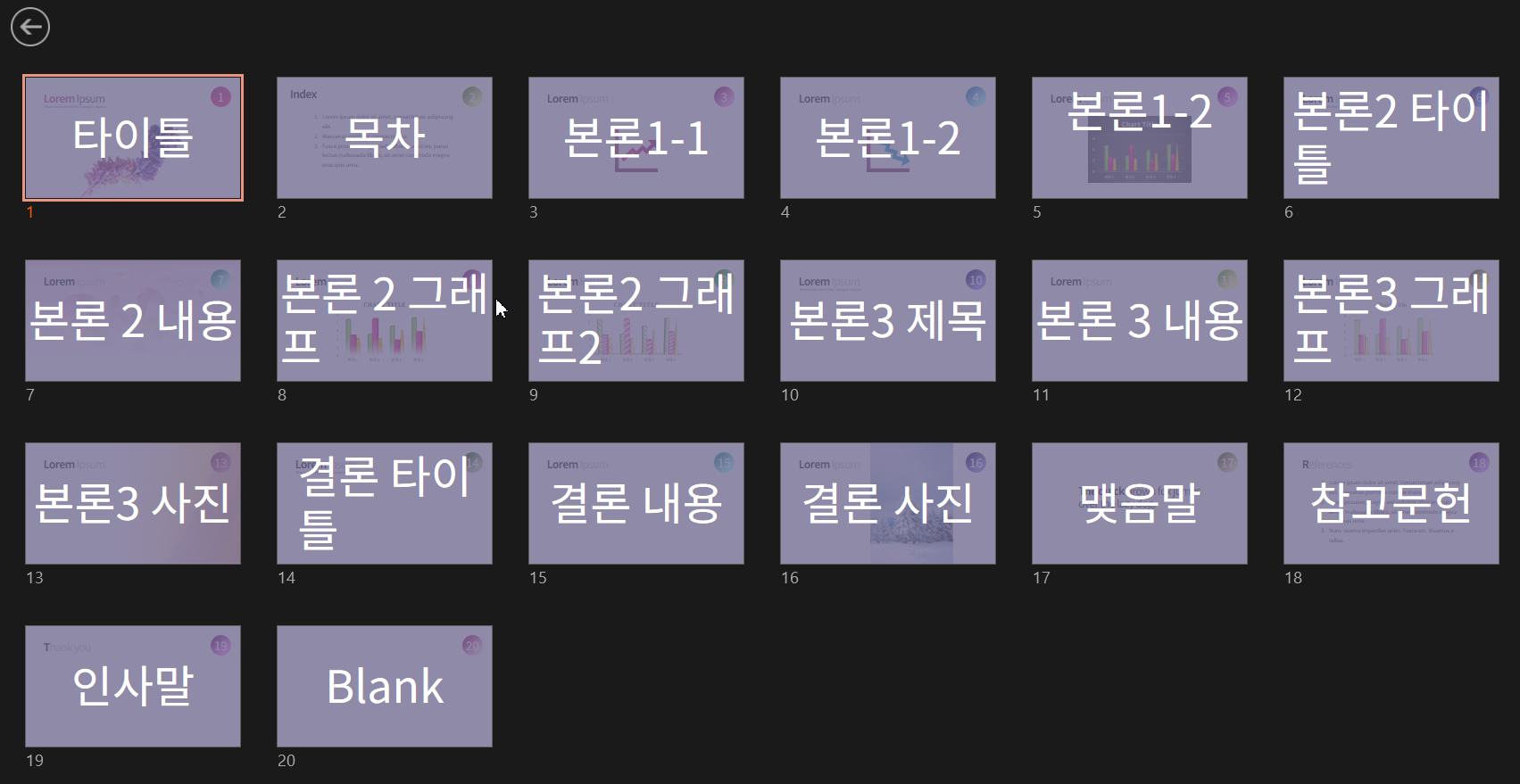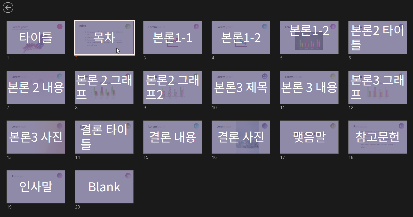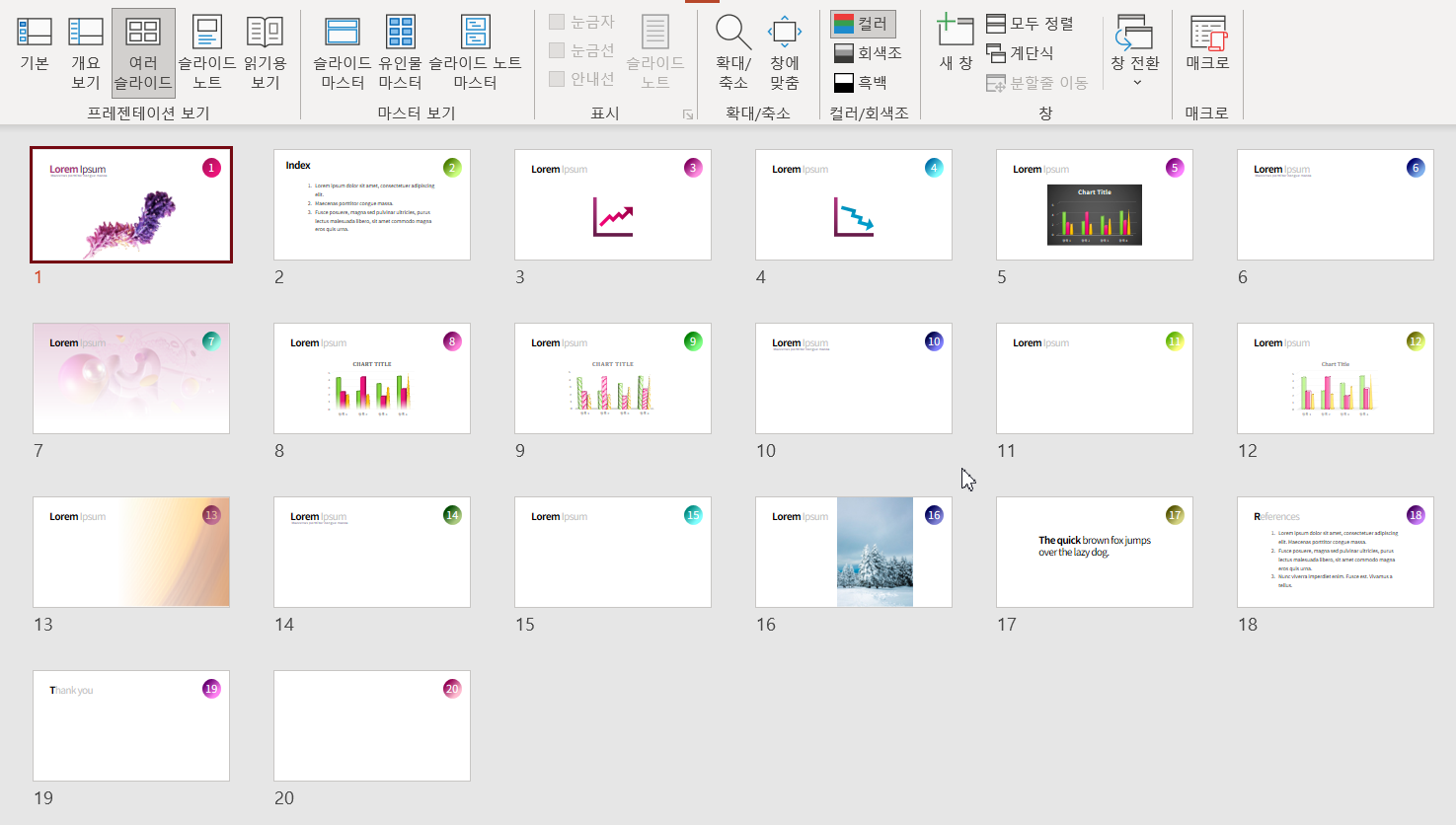 그래서 슬라이드 쇼에서 여러슬라이드 보기에서 슬라이드의 내용을 쉽게 알아볼 수 있게 만드는 것입니다.