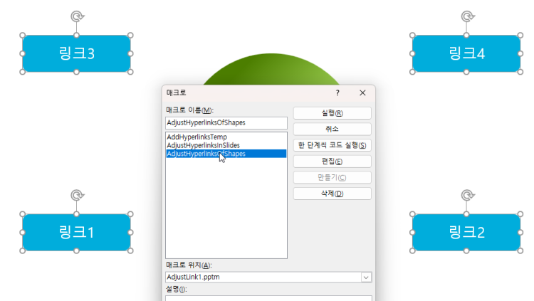 AdjustHyperlinksOfShapes 매크로를 실행하세요.