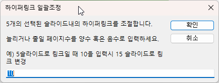 "예) 5슬라이드로 링크일 때 10을 입력시 15 슬라이드로 링크 변경", "하이퍼링크 일괄조정", 10)