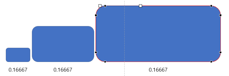 위 예시의 경우 도형 곡률 크기를 10으로 유지하도록 도형의 크기가 커지면 Adjustment(1)의 값을 줄여줍니다.