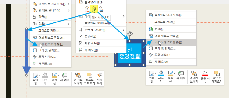 아니면 정상적인 선, 텍스트상자 그리고 도형을 원본 형식 유지로 복사/붙여넣기해서