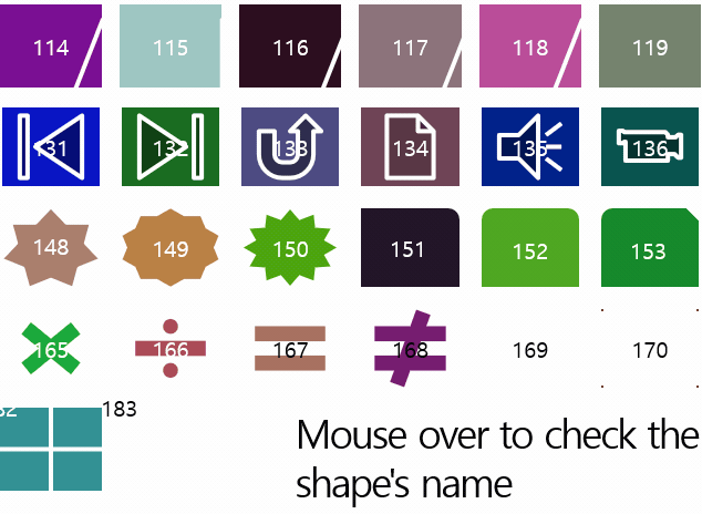 총 183개입니다. 138번은 오류가 납니다. 183번은 잘 보이지 않습니다. 일부 도형은 Adjustments 를 4개까지 조절할 수 있습니다.
