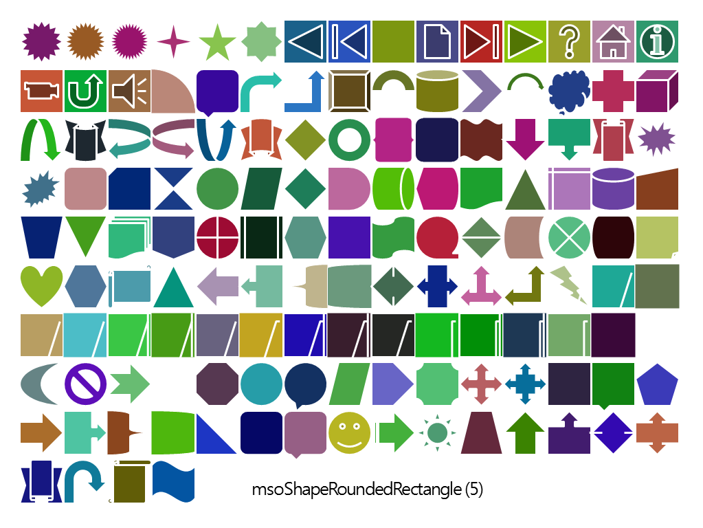 ShpName(5) = "RoundedRectangle": shp(5) = msoShapeRoundedRectangle