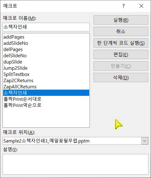 이번에는 파워포인트나 프린터에서 '소책자' 인쇄를 지원하지 않을 때
