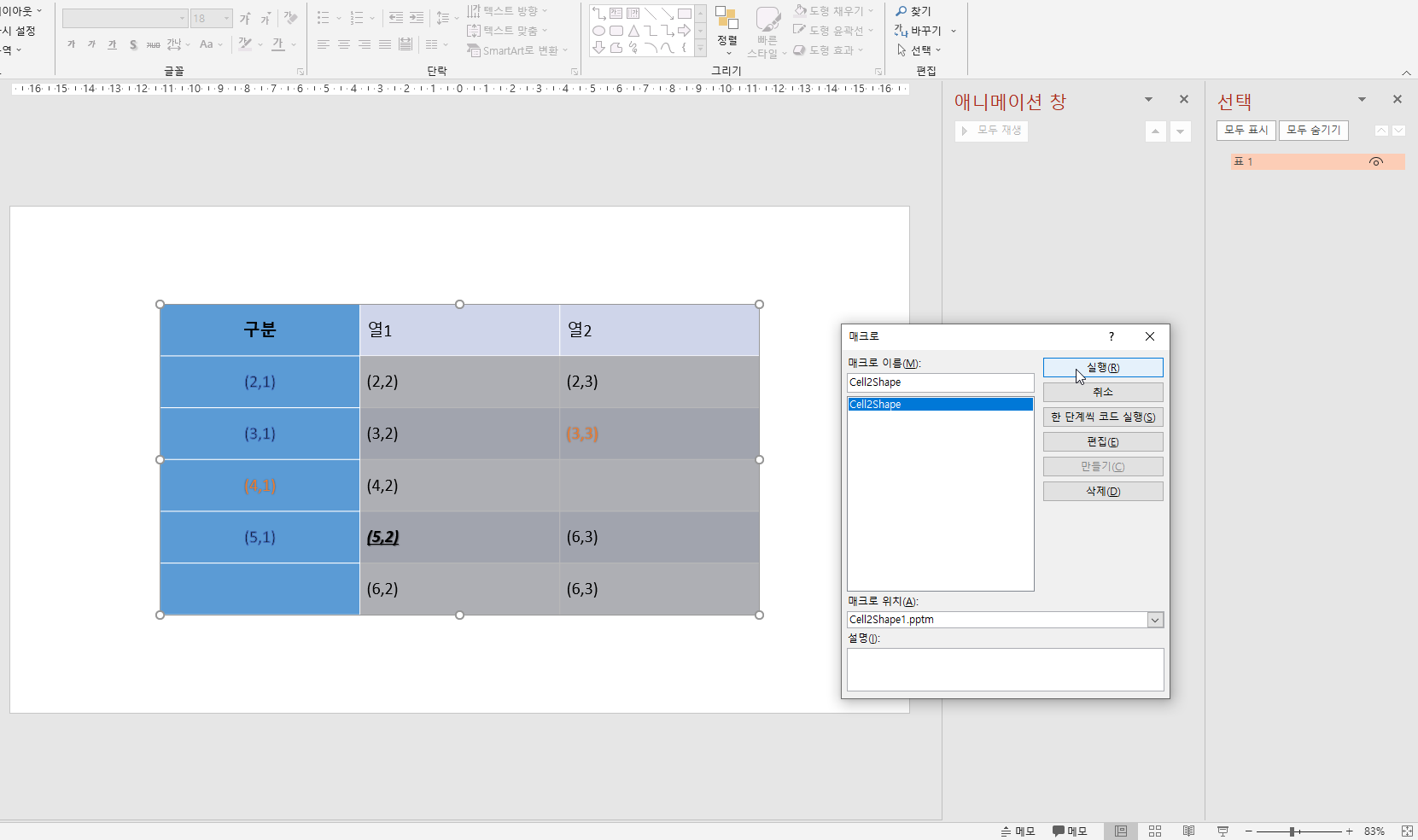 Cell2Shape 매크로를 실행할 수 있습니다.