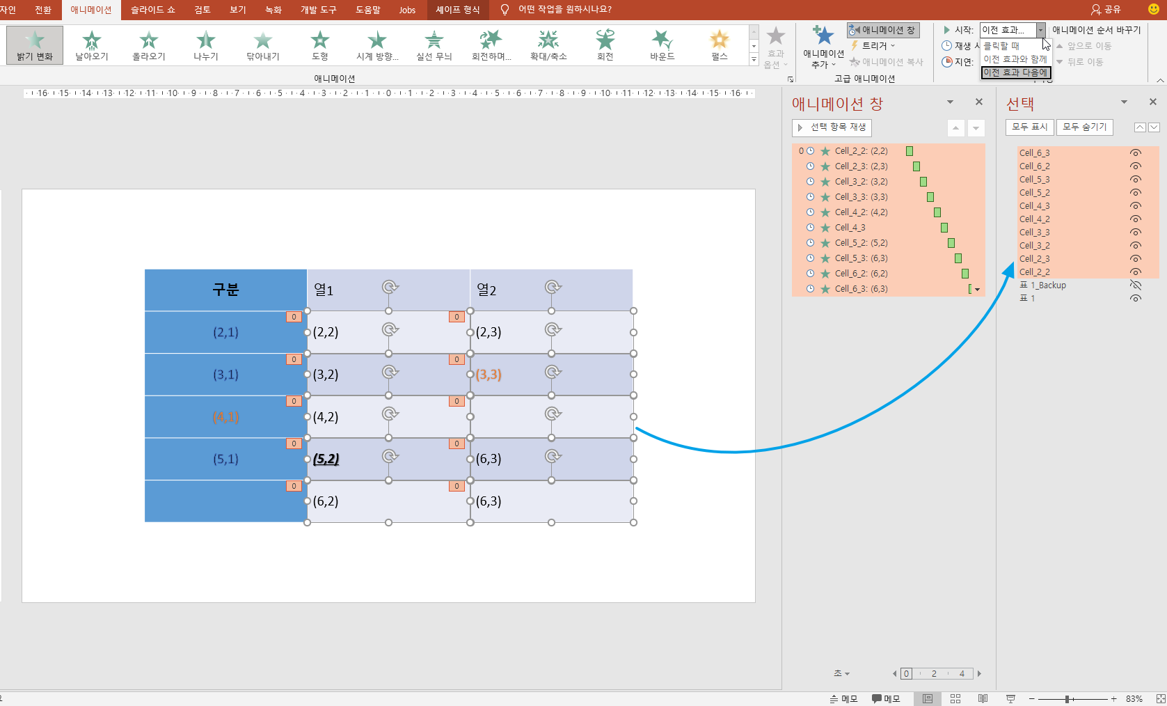 도형과 중복되기 때문에 기존 표의 해당 셀의 데이터는 삭제됩니다.