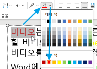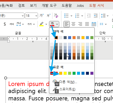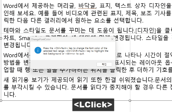 텍스트상자에서 특정 부분의 색상을 바꿀 때 빠르게 단축키로 변경하고 싶은 경우입니다.
