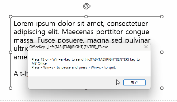 2. 오토핫키를 이용한다면 지난 번에 만들었던 OfficeAutohotKey 로 단축키를 지정할 수도 있습니다.