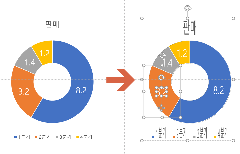 '차트 내부에서 텍스트가 있는 경우 빈 도형과 도형병합(빼기)를 이용해서 Freeform으로 변환(2013dltkd)