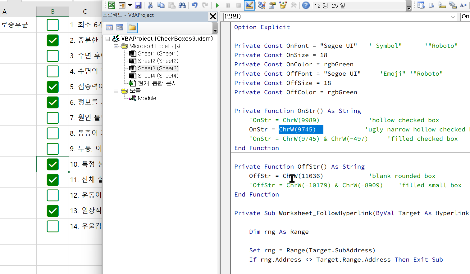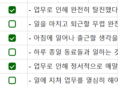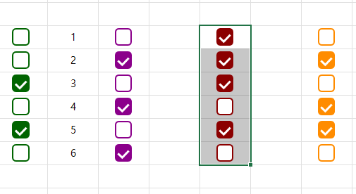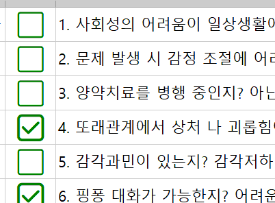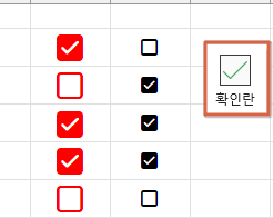'선택된 셀들에 체크 네모 삽입