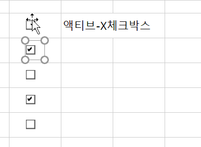 액티브-X체크박스가 있는 셀들을 선택하고 Alt+F8 > RemoveXCheckBox를 실행하면 액티브-X체크박스를 삭제합니다.