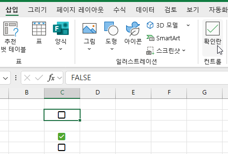 365 버전에는 엑셀 셀에 체크박스 즉, 확인란을 넣는 기능이 생겼습니다.
