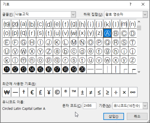 2. 유니코드문자에서는 50까지 원문자를 지원 하기도 합니다. 시스템에 따라 다르게 보일 수 있습니다.