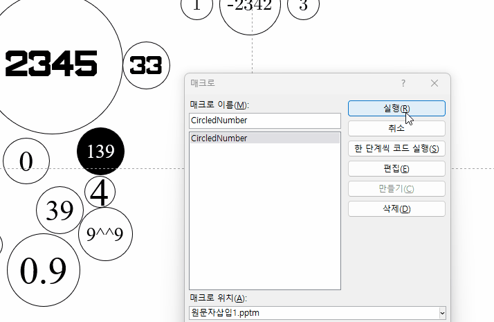 매크로 실행 화면: