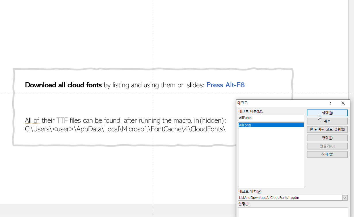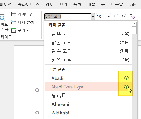 🎃🎃🎃 참고3. 파워포인트 365버전에서 클라우드 폰트를 불러오는 과정에서 폰트 목록이 늦게 뜨는 경우 좀더 빠르게 하는 방법( How to make font listing on Powerpoint 365 faster by not using cloud fonts):