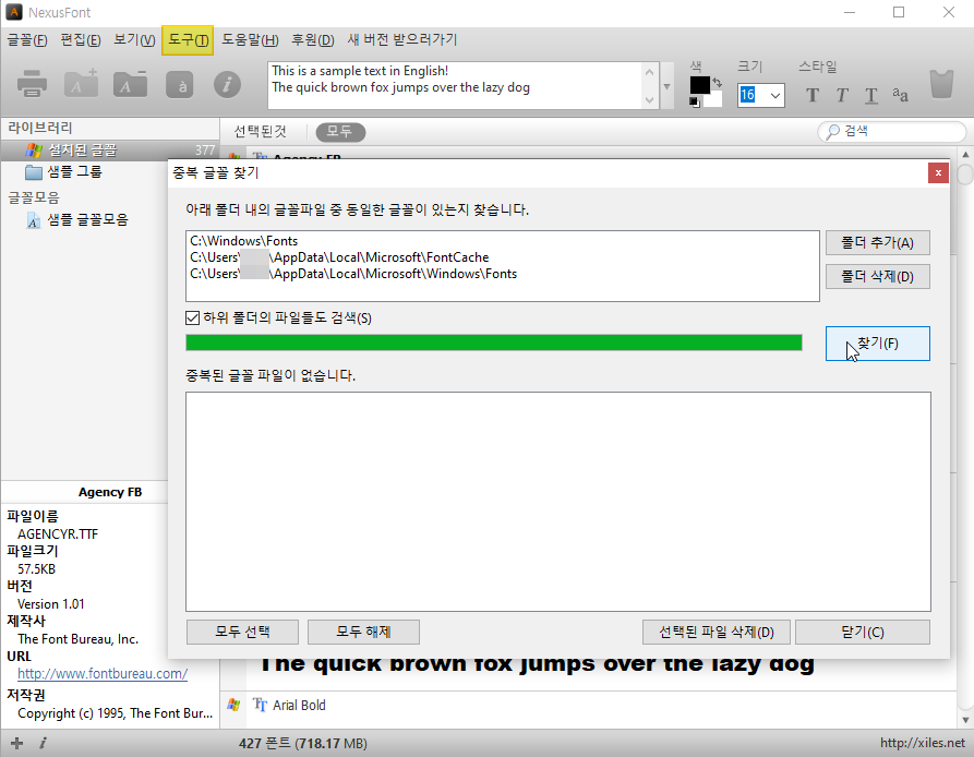 nexus font 를 다운로드 설치하고 도구-중복폰트 찾기 메뉴에서