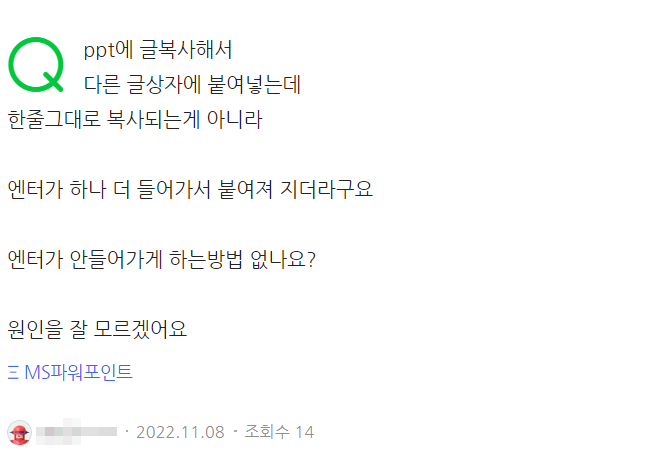 문장 끝의 개행문자 복사를 방지하면 안됩니다.