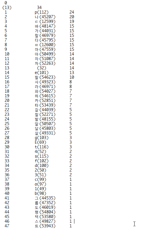 각 글자의 사용빈도를 디버그창(Ctrl-G) 에 출력해줍니다.