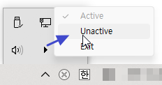 아니면 시스템 트레이 검고 작은 화살표 아이콘을 우클릭하고 Active/Unactive/Exit 메뉴를 클릭해도 됩니다.