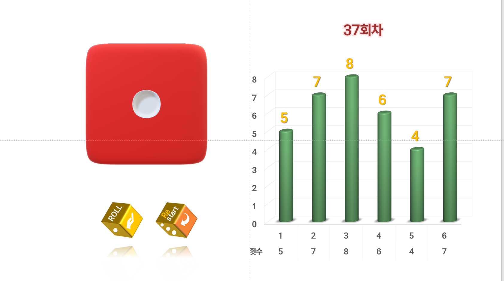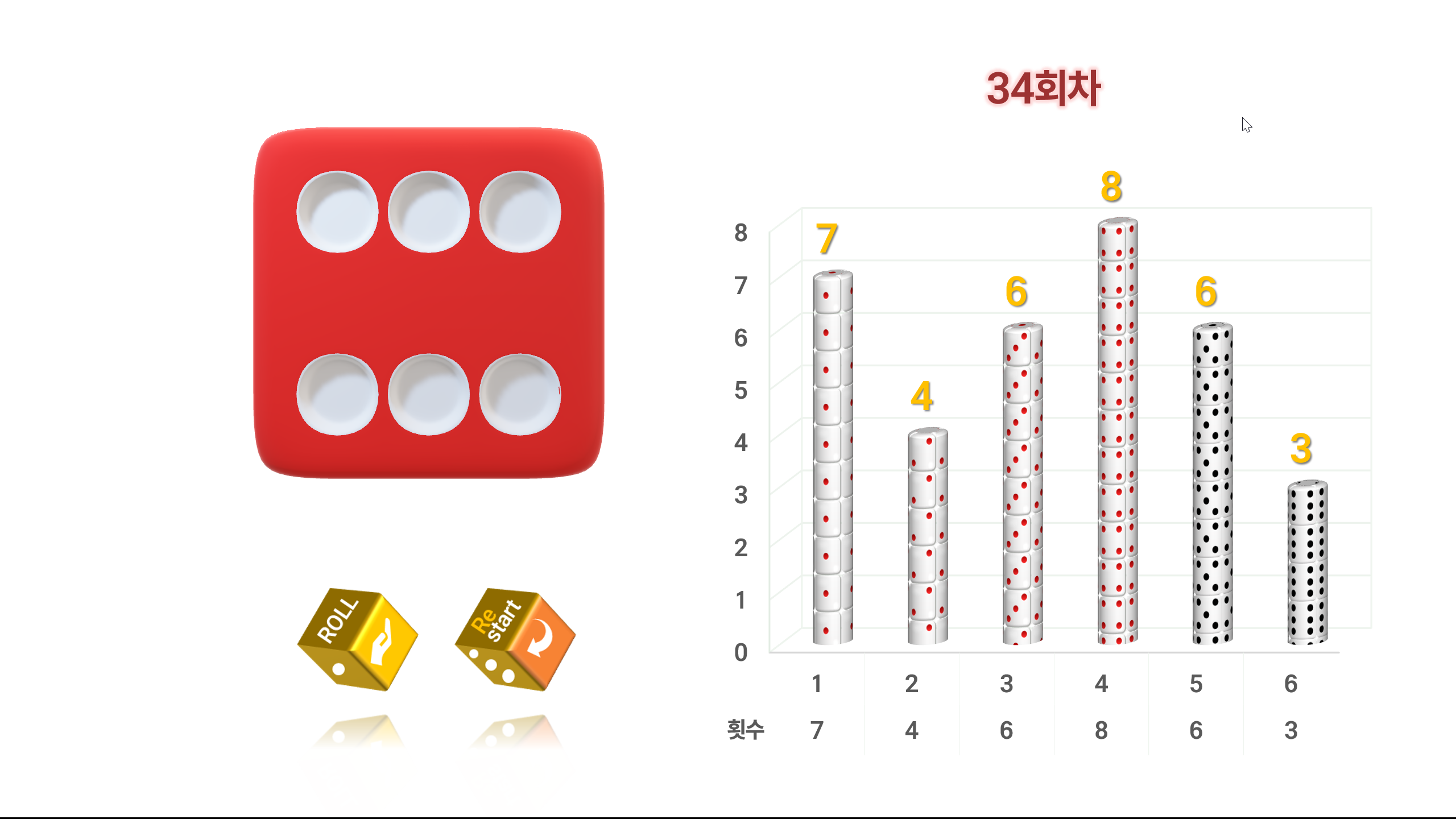 또한 횟수와 각 눈별 누적 개수를 차트로 보여줍니다.