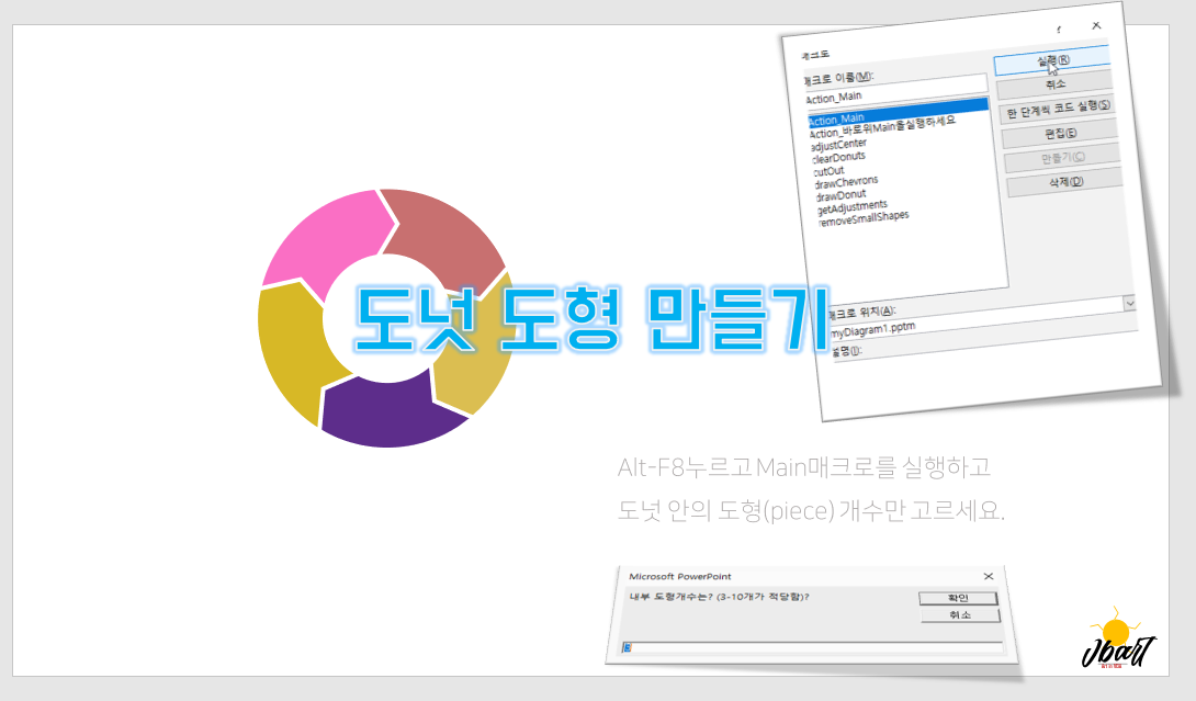 각각 2,3,4,5,6,7,8,9,10개짜리 도넛 도형을 자동 매크로로 만들어서 첨부하였습니다.