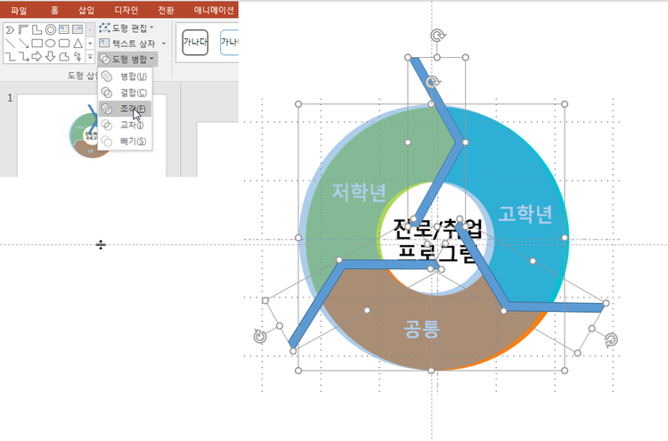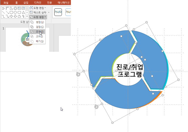 (도형 조각내기는 파워포인트 2010년 이하 버전은 지원이 되지 않습니다.)