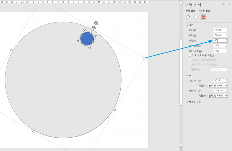 '그룹도형을 복사 후 회전
