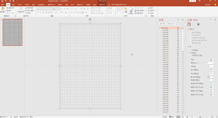 파워포인트에서 선을 그을 수 있는데 반복과정을 VBA로 처리해서 자동으로 모눈 눈금을 만들어볼 수도 있습니다.
