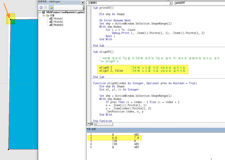 alignY 2, False '2번째 노드를 다음 y좌표와 일치시킴