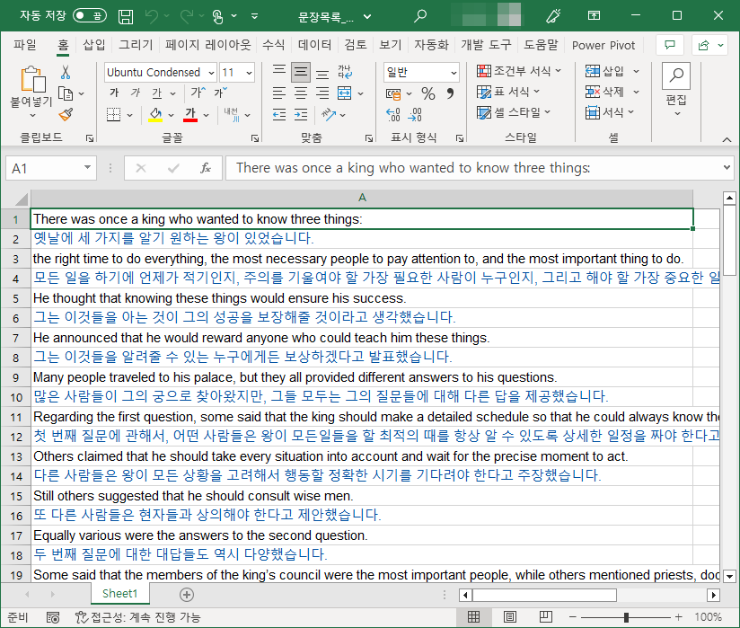 일단 아래와 같은 엑셀 목록이 있습니다.