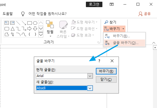 심지어 빈칸에 사용된 폰트가 특정 폰트인 경우도 있습니다. 그래서 사용하지 않는 폰트가 글꼴 바꾸기 목록에 뜨는 것입니다. 이 때는 말씀드렸듯이 Arial 로 일단 바꾼 뒤에 다른 한글폰트로 바꿔보세요. Arial 은 파워포인트 파일내에 반드시 필요한 '절대폰트'로 위의 ComplexScript폰트에 대한 글꼴로도 적용할 수 있습니다. Language ID가 다른 나라로 설정된 경우도 폰트가 바뀌지 않을 수 있는데 그 때는 검토 메뉴에서 교정언어를 원하는 나라의 언어로 바꾼 뒤에 폰트를 바꿔보세요. ⚠⚠⚠