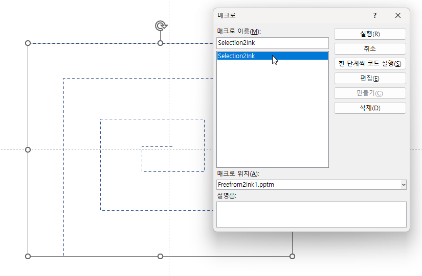 Alt-F8을 누르고 다시 Freemform2Ink 매크로를 실행해서 선을 잉크로 변환합니다.