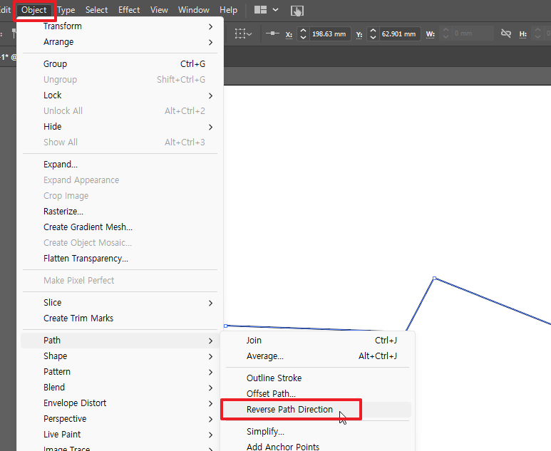 일러스트레이터에서 해당 Path의 순서를 Reverse 해줘야 합니다.