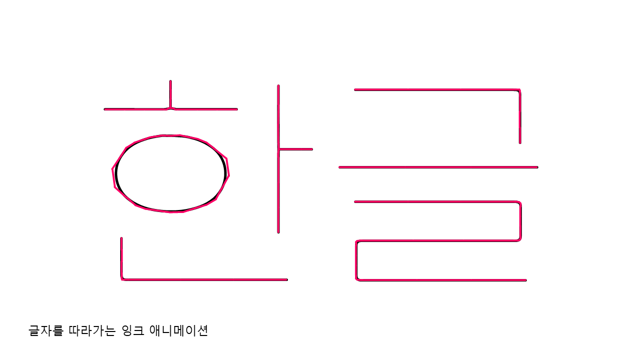 이 방법을 한글이나 영어 글씨 선에 적용하여 마치 글씨를 쓰는 것처럼 글자 획을 따라서 잉크 그리기가 재생되도록 할 수 있습니다.