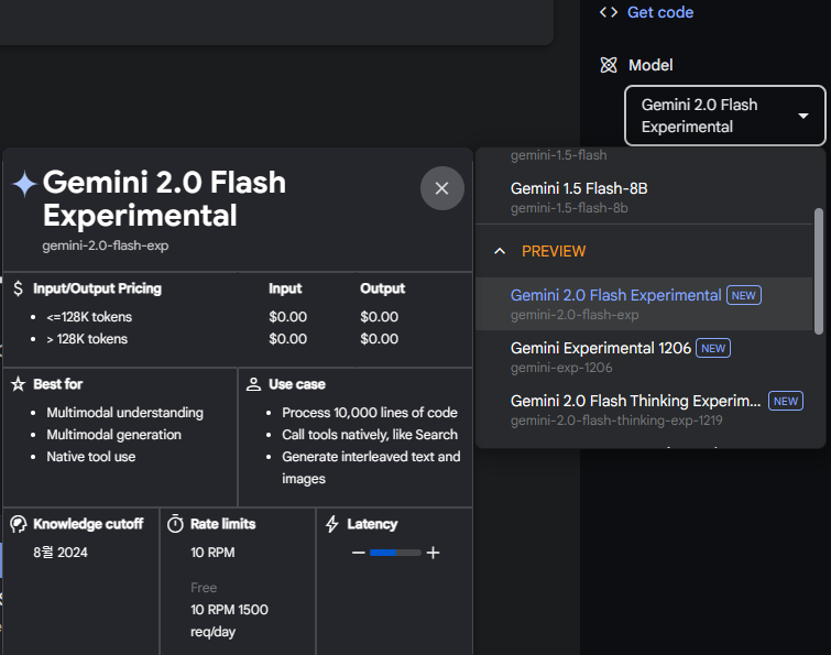 구글 Gemini 는 아래처럼 여러가지 모델로 테스트중입니다.