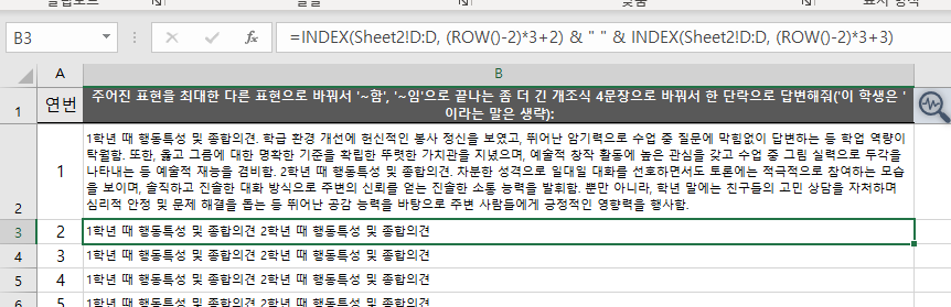 ✅ 중요한 것은 [B1]에 있는 아래와 같은 프롬프트 명령을 잘 튜닝해서 명령을 해줘야 결과값이 원하는 대로 나오게 됩니다. 조건을 자세히 명시하는 것이 좋습니다.