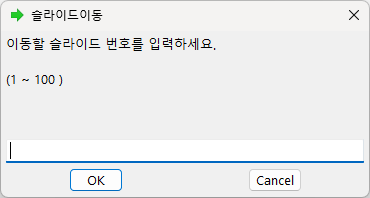 InputBox, strPage, 슬라이드이동, 이동할 슬라이드 번호를 입력하세요.`n`n`(1 ~ %total% `),,,,,,,,%total%