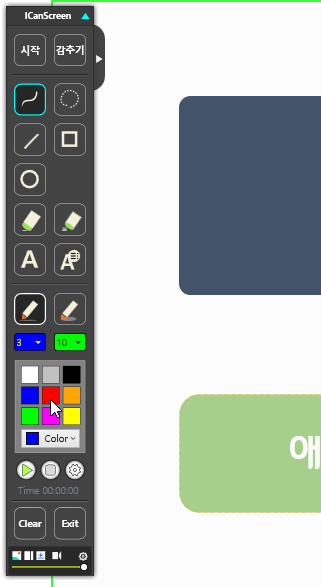 1. 잉크 색을 빨리 바꾸려면 슬라이드쇼 화면보다는 녹화(레코드) 화면을 이용하면됩니다.