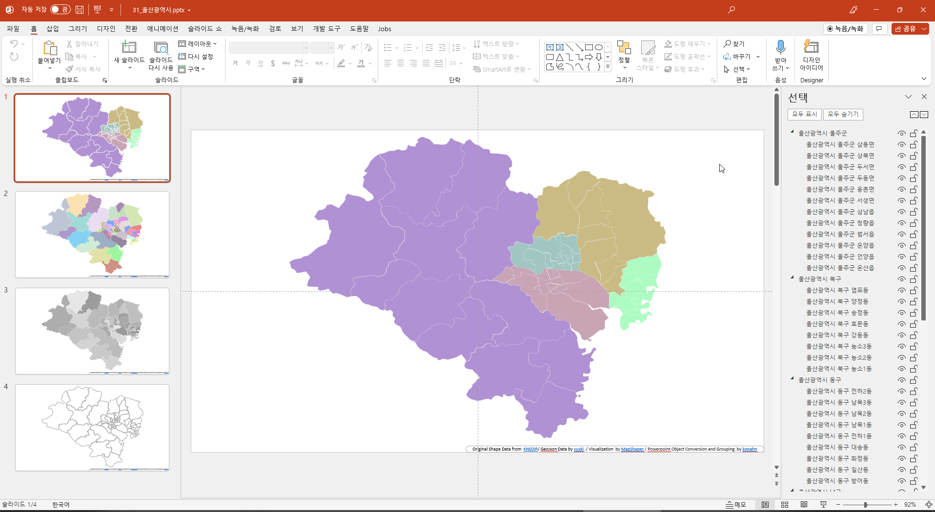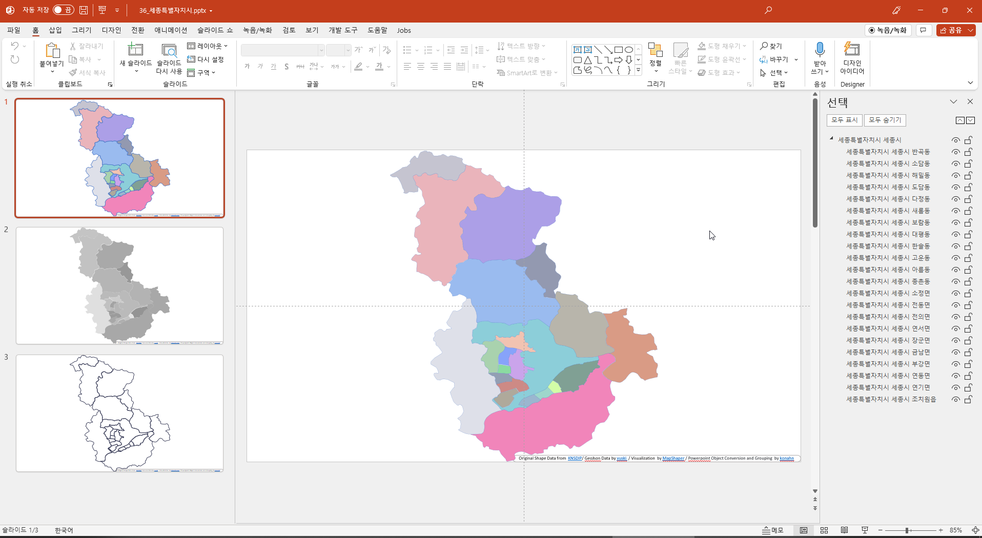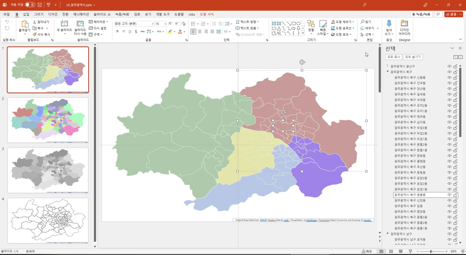 프리젠테이션에 서울 지도나 백지도 동이나 구별로 시각적 데이터를 표현할 때 필요한데