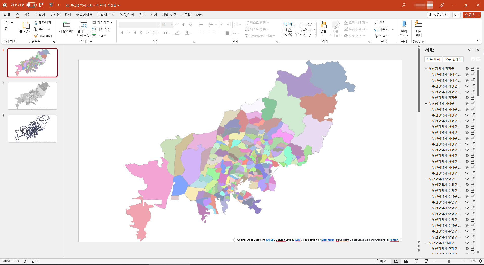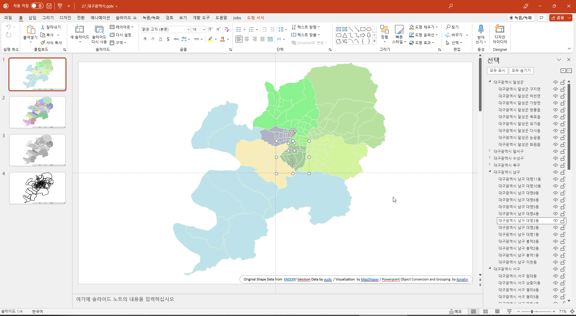 또한 각 구별로 그룹으로 묶여 있어서 구별로도 색깔지정이 가능합니다.
