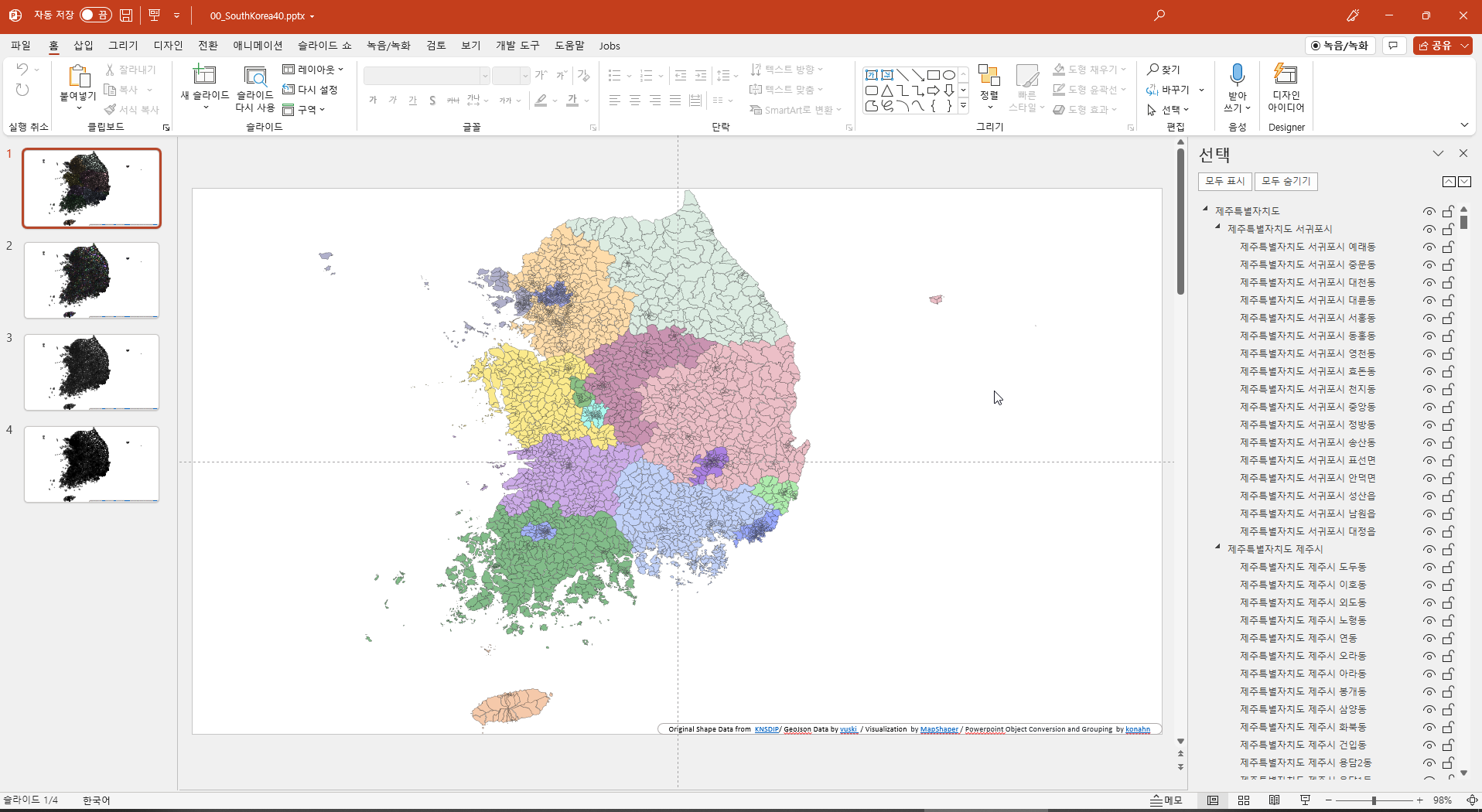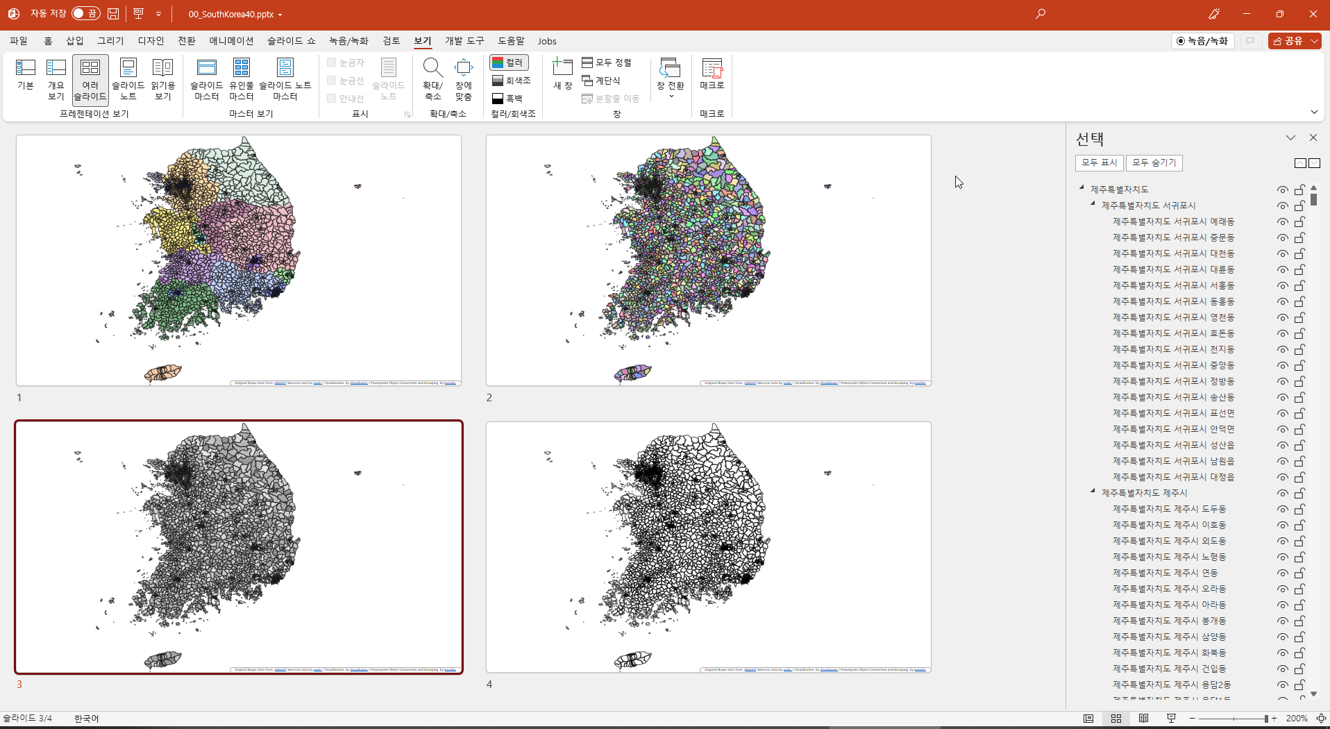 위의 경우 지도 정밀도는 낮췄으나 4 슬라이드로 용량이 커서 분할 압축하였습니다.