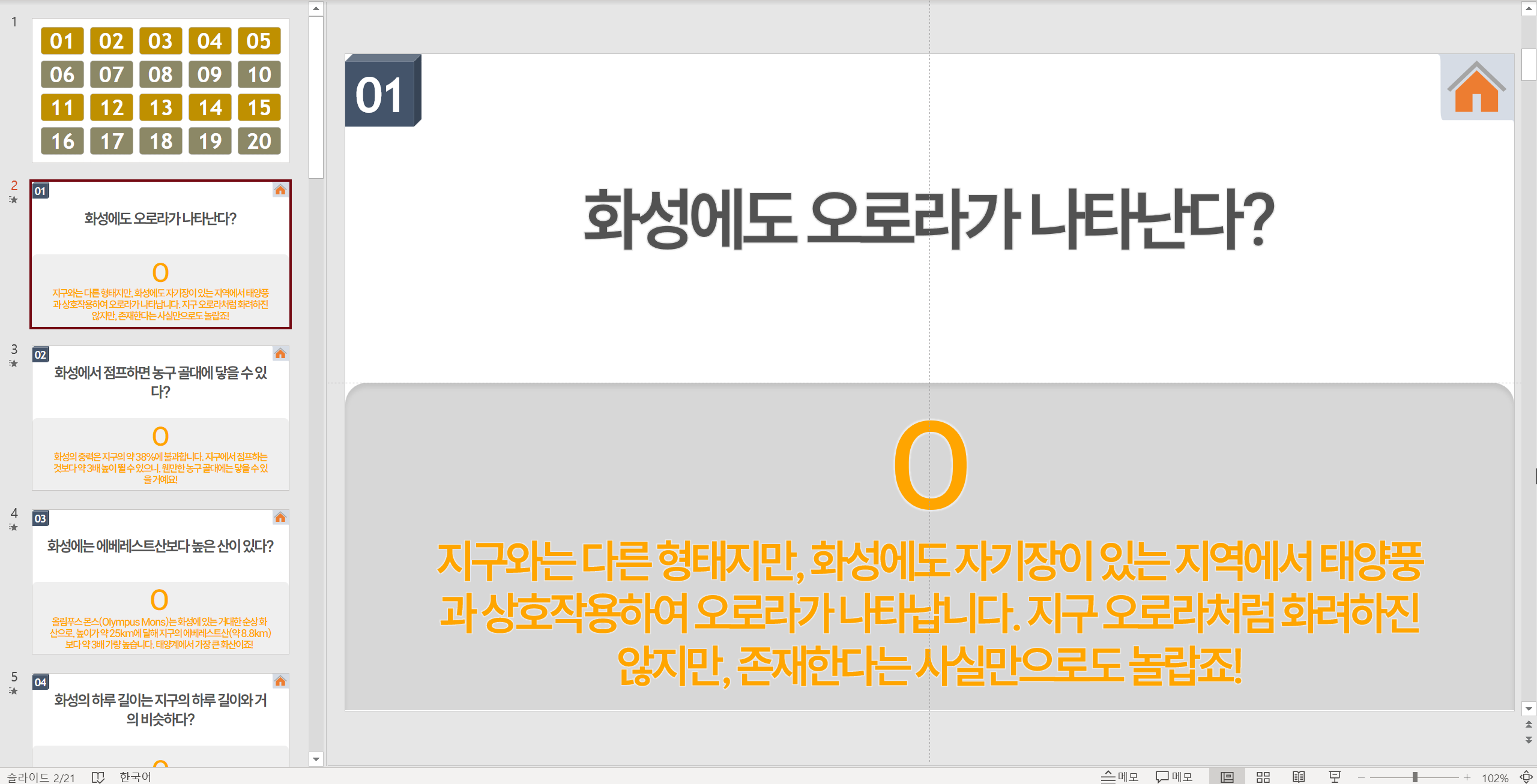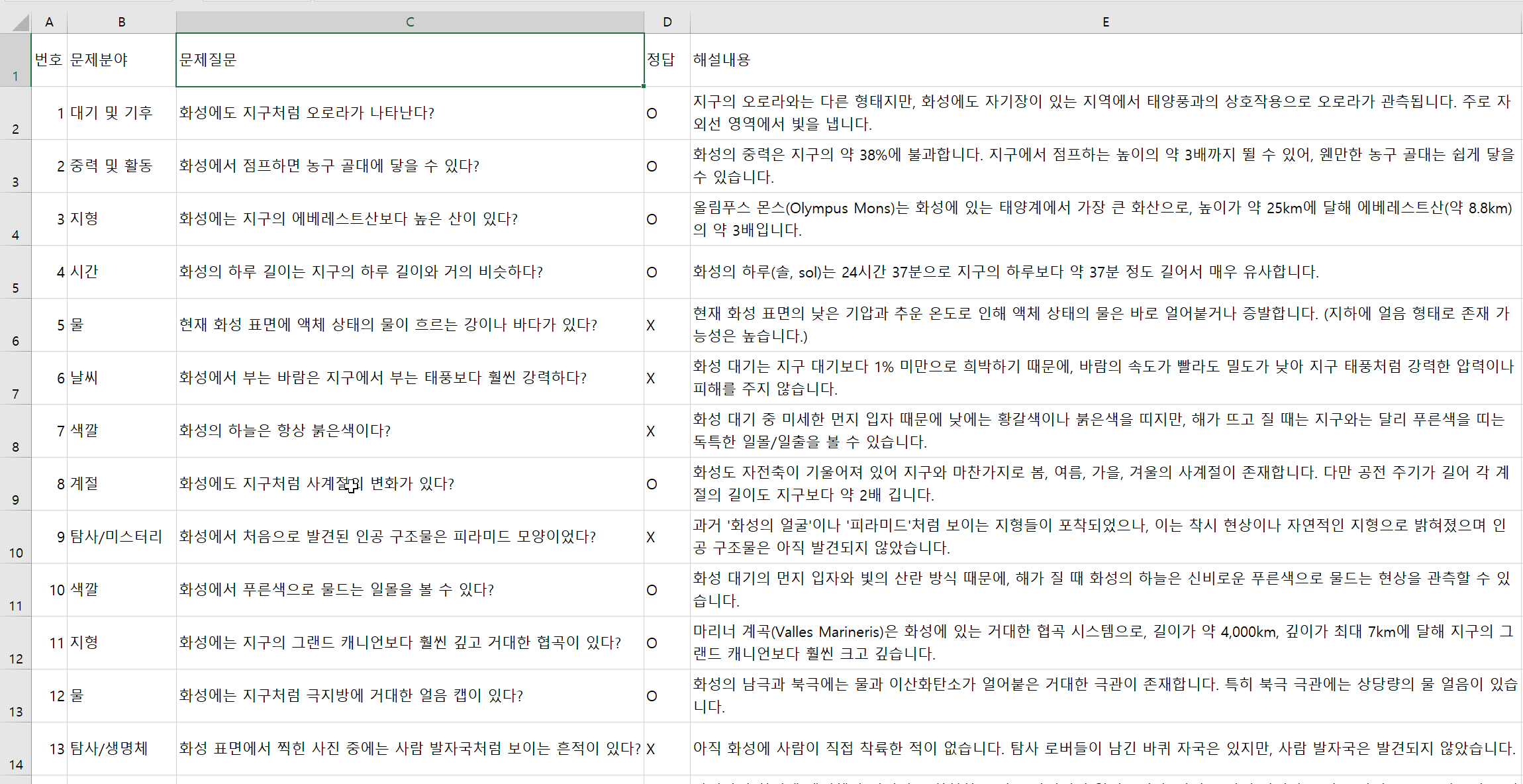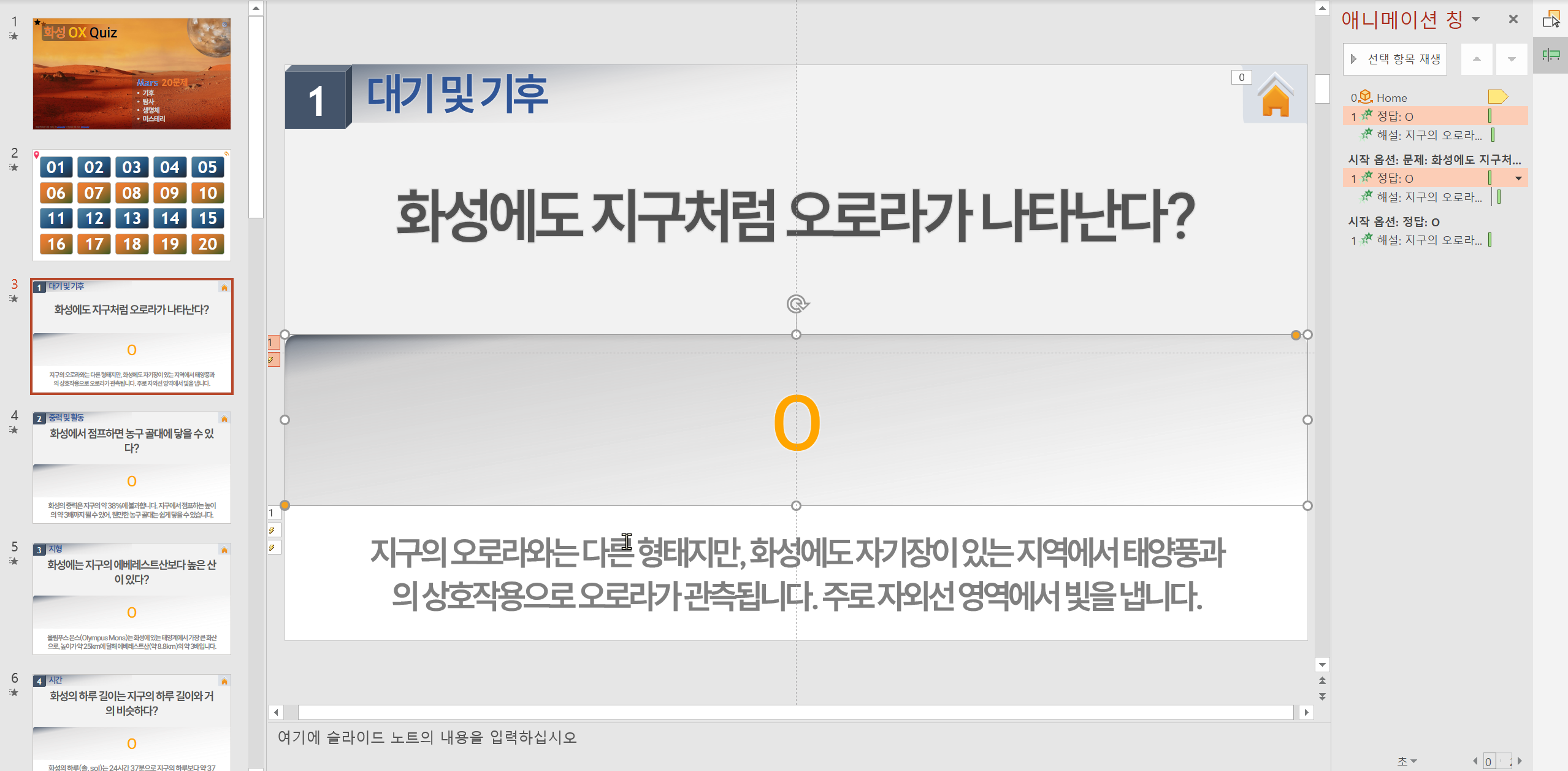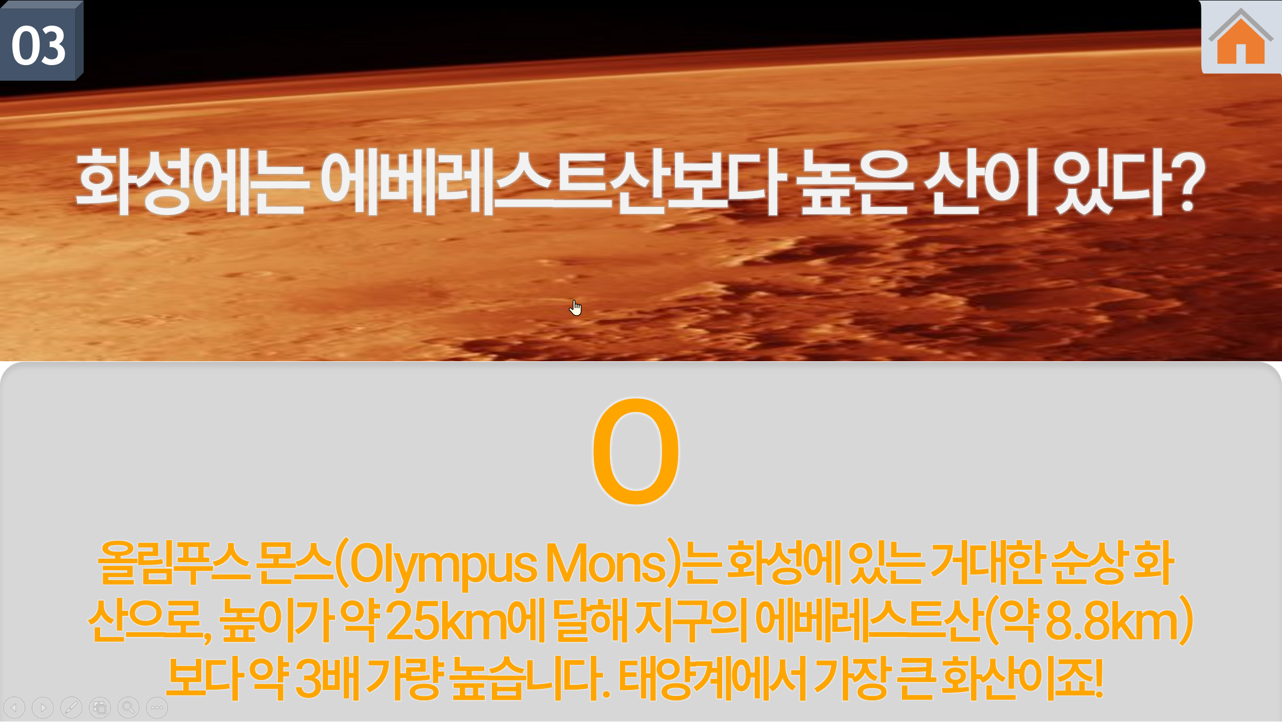 태양계에서 지구와 가장 가까운 붉은 행성 화성에 대한 Bomb Game형식의 OX퀴즈 샘플입니다.